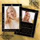 Modern gold foil and black Class of 2025 with photo graduation announcement. This photo Announcement is designed with a sleek and contemporary touch. The combination of black and gold foil creates a modern aesthetic, with the gold foil border elegantly framing the graduate's photo against a black background. The name and other important information are thoughtfully placed outside the frame, ensuring they stand out on the black background with their gold color. On the back of the announcement, you will find the same stylish border along with another photo and all the essential details about the graduation. The cover has been designed using some assets from Freepik.com