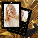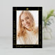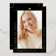 Modern gold foil and black Class of 2026 with photo graduation announcement. This photo Announcement is designed with a sleek and contemporary touch. The combination of black and gold foil creates a modern aesthetic, with the gold foil border elegantly framing the graduate's photo against a black background. The name and other important information are thoughtfully placed outside the frame, ensuring they stand out on the black background with their gold color. On the back of the announcement, you will find the same stylish border along with another photo and all the essential details about the graduation.