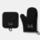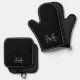 Black Classic Custom Monogram & Name Oven Mitt & Pot Holder Set