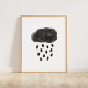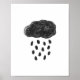 Chalky, textured brush style Cloud and Raindrops in black, perfect for baby nursery decor, childrens bedroom wall hangings or little kids playroom wall art.