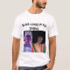 A white tee shirt with two oil paintings of black females, done by the artist Jo-Ann Hayden with the script"Black comes in all shades on the front. On the back, "Dont' hate, appreciate."