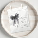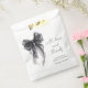 Elegant thank you favor bags for your bridal shower featuring a black watercolor of a delicate coquette bow, "with love and thanks" in a chic script, and the name of the bride and shower date in modern lettering.