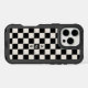 Cool iPhone case features a bold black and cream checkered pattern with a customizable monogram. Add (or delete) 3 initials in the sidebar to personalize it. The geometric checkerboard pattern is made of rows of alternating beige and black squares. Other case styles and models also available in the sidebar.