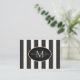 Black & Cream Stripes Oval Framed Monogram Custom Note Card