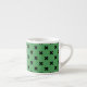 Black cross stitches on green espresso cup