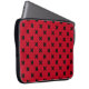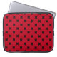 Black cross stitches on red laptop sleeve