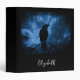 A binder with an image of a black raven at night perched on a tree branch with runes above which says "black raven".