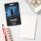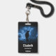 Personalized name badge with an image of a black raven at night perched on a tree branch with runes above which says "black raven".