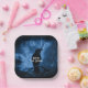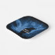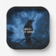 Paper plates with an image of a black raven at night perched on a tree branch with runes above which says "black raven".