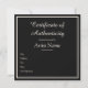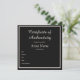 Black Customizable Certificate of Authenticity Note Card