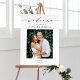 This photo wedding welcome sign features whimsical calligraphy and minimalist typography, creating a modern yet personal way to greet your guests. Easily add your own photo, names, and wedding date to make it truly yours. The clean design works well with many wedding styles, including rustic, elegant, and contemporary themes. Use it at the entrance of your ceremony, reception, or welcome area to set the tone for your day. With clear, simple customization and a professional layout, this modern photo wedding sign offers both style and function.