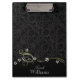 Clipboard - Black Damask and Black Swirls and floral design. Great for a company, corporation, workshop, office, home or school. Add your name. ⭐This Product is 100% Customizable. Graphics and/or text can be added, deleted, moved, resized, changed around, rotated, etc... 99% of my designs in my store are done in "LAYERS". This makes it easy for you to resize and move the graphics and text around so that it will fit each product perfectly. ✔(just click on the "EDIT DESIGN" area to do some of your changes) NOTE:***📌 (Please be sure to resize or move graphics if needed before ordering it will print exactly like you see it on the screen - keep the text in the green dashed area) You can also "TRANSFER DESIGN" on other Zazzle products and adjust the design to fit most of Zazzle items. (button is down on the right side of the page) Some of the text graphics have ready to fill in the box(es) or you can Click on the "CUSTOMIZE" button to add, move, delete, resize, background color or change any of the font or graphics. The design is made with high resolution vector and/or digital graphics for a professional print. 📌NOTE: (THIS IS A PRINT. All Zazzle product designs are "prints" unless otherwise stated under "About This Product" area) The design will be printed EXACTLY like you see it on the screen and on the product...so please make sure when you do your changes on the resizing of any of the graphics or text that it fits in the areas correctly and that your spelling and wording is how you like it to be in size, color and font. If you have any questions about the "ART DESIGN ONLY" or need help in that area, please contact me at ✉ siggyscott@comcast.net or visit my store link: https://www.zazzle.com/store/designsbydonnasiggy (Copy and Paste) I'll be happy to help. OTHERWISE 📌 All other questions (Shipping, Refunds, the Printing was NOT Correct, the Product itself, etc...) Please Contact "Zazzle" or the Maker ⭐DIRECTLY⭐The DESIGNER cannot help you in these areas. They only do the ART DESIGN. Thank you for the support and stopping by my store - DesignsbyDonnaSiggy. © Donna Siegrist⭐⭐⭐ ZAZZLE promises 100% satisfaction. If you don't absolutely love it, Zazzle will take it back! ⭐⭐⭐ 1-888-8ZAZZLE (1-888-892-9953) Phone hours: Mon - Fri: 9AM - 5PM PT (12PM - 8PM ET)