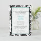 Black Damask Aqua Blue Monogram Wedding Invitation