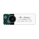 Cute design with black vintage damask pattern with PRINTED aqua glitter effect and monogram initial. Elke Clarke © for DamaskGallery on Zazzle. Use this fun return address label with your monogram initial, name and address details for your wedding invitations, wedding thank you cards or bridal shower invitations and more. For other glitter colors contact store owner.