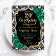 Black Damask Gold Green Roses 20th Birthday Invitation