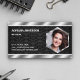 Professional realtor business card featuring brushed steel accents with modern typography. Add your name, photo and contact details to make a lasting first impression.