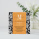 Black Damask Orange Monogram Wedding Invitation