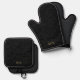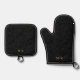 Black Damask Pattern Monogram Oven Mitt & Pot Holder Set