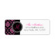 Cute design with black vintage damask pattern with PRINTED pink glitter photo effect and monogram initial. Elke Clarke © for DamaskGallery on Zazzle. Use this fun return address label with your monogram initial, name and address details for your wedding invitations, wedding thank you cards or bridal shower invitations and more. For other glitter colors contact store owner.