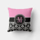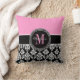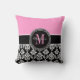 Black Damask Pink Monogram Personalized Pillow