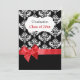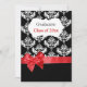 Black Damask & Red Ribbon Graduation Invitation