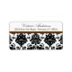 Our black damask return address stickers are the perfect finishing touch for your Bridal Shower Invitations, Wedding Invitations or Thank You Note Cards. This item features a beautiful band of black damask with a brown color accent strip set on a white background. You can easily change the color strip... just go to customize and then under edit pick the background color. Feel free to contact us for help! Matching items available in our shop @ www.celebrateitweddings.com. This item is available in other colors in our shop.
