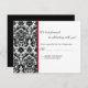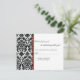 Elegant black damask response cards with a red accent. Matching black damask invitations, RSVP Cards, Wedding programs, Envelope seals, & postage stamps available in our shop at www.celebrateitweddings.com