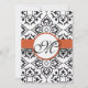 Black Damask Side Borders Orange Red Trim Wedding Invitation