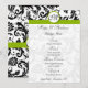 Vintage Modern Black and White Floral Damask Patterns with Apple Green Trim Wedding Invitations. Perfect for Rococo Baroque, Medieval Renaissance, Art Deco Art Nouveau, Roaring 20s Gatsby, Victorian Weddings or Elegant Farmhouse Wedding Themes Venues.
