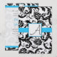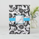Black Damask Swirls Light Bright Aqua Trim Invitation