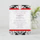 Black Damask Swirls Red Trim Purple Font Wedding Invitation
