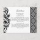 Stylish black damask Direction Card. This card can be used as a directions or enclosure card in your wedding invitations. As an enclosure card, it can include information about hotel accommodations, scheduled activities, gift registries, wedding websites and other details regarding your event. Matching black & white damask invitations, RSVP Cards, Wedding programs, Envelope seals, & postage available in our shop at www.celebrateitweddings.com