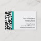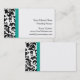 Wedding planner business cards, with a black and teal damask design. Enter your information in the space provided, or click "customize" to add additional text.