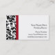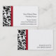Wedding planner business cards, with a black and red damask design. Enter your information in the space provided, or click "customize" to add additional text.