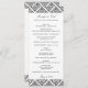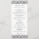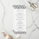 This wedding program design features a lovely black damask pattern at the top and bottom.
