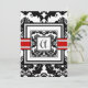 Black Damask with Red Trim Wedding Invitation