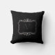 Black Damask with silver frame monogram Throw Pillow