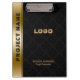 Black Damasks Pattern Gold Stripe Accent Clipboard