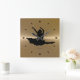 Black Dancer Silhouette On Gold Stainless Steel Square Wall Clock