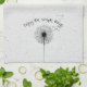 Inspirational quote with black dandelions and seeds on a gray terrazzo pattern.