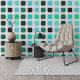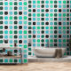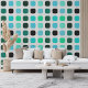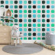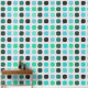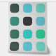 This design features a modern textured geometric motif with black, dark green, sky blue, and aqua turquoise red rounded squares on a white gray colored backdrop. The pattern is both ornate and elegant, exuding a funky hipster essence. It's a sophisticated and chic design that represents eclectic minimalism, ideal for artistic interior designers, home decor lovers, trendsetters, and aficionados of vintage, retro, or abstract digital geometric patterns. This ornate yet trendy hipster pattern is versatile and offered on a range of contemporary home decor products, suitable for enhancing the atmosphere of various spaces like master bedrooms, kitchens, living rooms, man caves, college dormitories, condominiums, studios, or apartments.