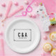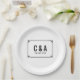 Simple and minimalist Deco Chic Wedding Paper Plates with a modern black art deco ornamental border. These classic and elegant plates are easy to customize with your wedding details. Find more personalization options by clicking Customize.