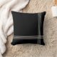 This comfy throw pillow (available in 2 shapes) has a simple, clean, Art Deco style design of a band of 3 icy white narrow stripes slightly off-center from the right hand side intersected by a repeat band of 3 turned horizontally off-set from the bottom. The back is solid black to give you a choice.
