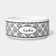 Lovely black vintage damask pattern background on white with a personalizable text area for the name of the pet. The font is a lovely script font in black color.