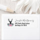 Address labels with a black deer head with large antlers. Geometric lines inside the face of the deer adds a creative touch. Colorful pink flowers and mint