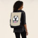 A backpack with a black deer head with large antlers. Geometric lines inside the face of the deer adds a creative touch. Colorful pink flowers and mint