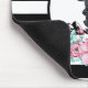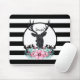 A personalized mousepad with a black deer head with large antlers. Geometric lines inside the face of the deer adds a creative touch. Colorful pink flowers and mint