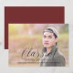 Modern and elegant Delicate Class of Twenty Seventeen Photo Graduation Announcement with a trendy handwritten calligraphy design in black. This classic and stylish typography graduation photo card is easy to personalize with a photo of the graduate and their graduation details. Find more customization options by clicking Customize where you change the background color on the backside of the invite.