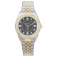 Black diamond dial watch with a customizable sentimental saying on the dial of the watch. Diamonds and precious metals are not real but digital imagery. Bracelet of watch is not real gold.