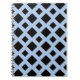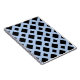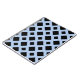 A stylish, geometric pattern of large and small black diamonds on a light blue background. The baby blue forms a lattice which separates the black diamond shapes.